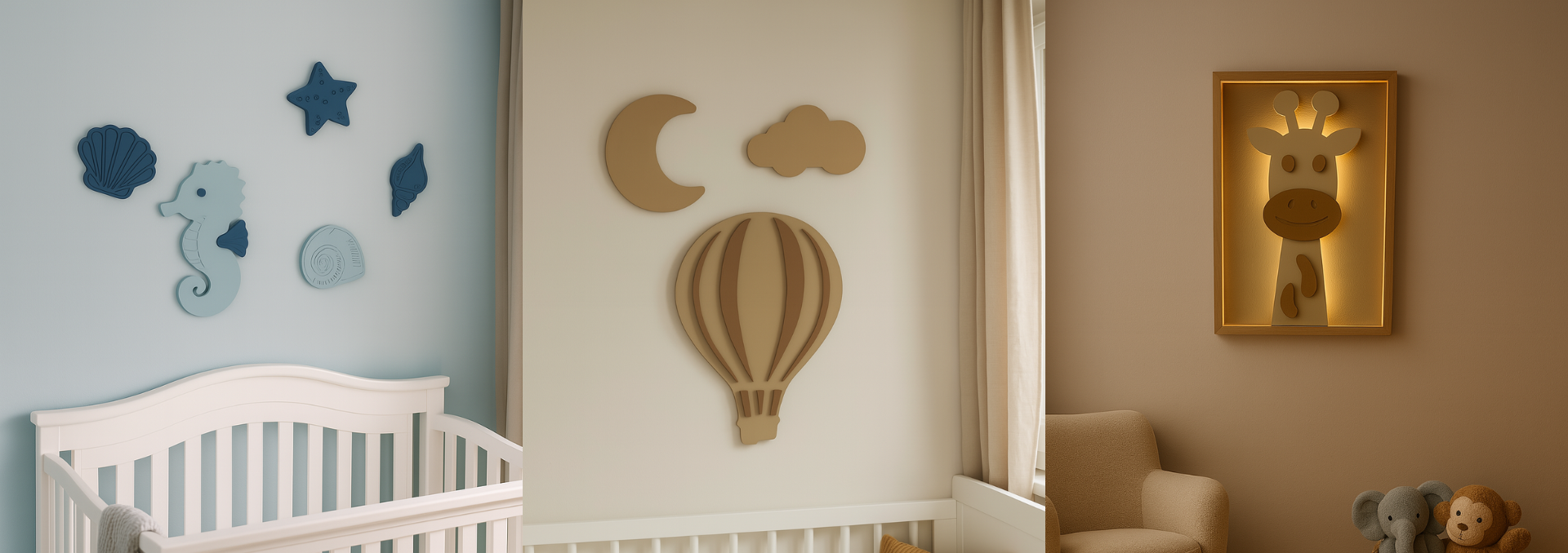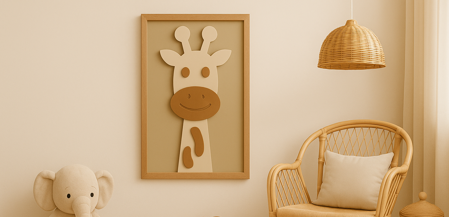 Ontdek handgemaakte 3D schilderijen voor baby- en kinderkamers. Zachte natuurlijke stijl, uniek...