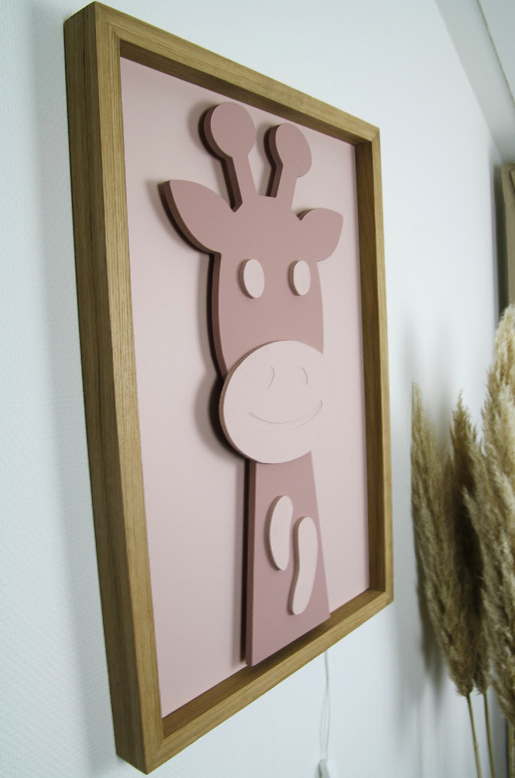 Breng een magisch sfeerlicht in de baby- of kinderkamer met dit handgemaakte 3D-schilderij. De subtiele warme LED-verlichting en het zachte 3D-effect maken het een echte eyecatcher, een bijzonder kunstwerk dat de kamer elke avond tot leven brengt.